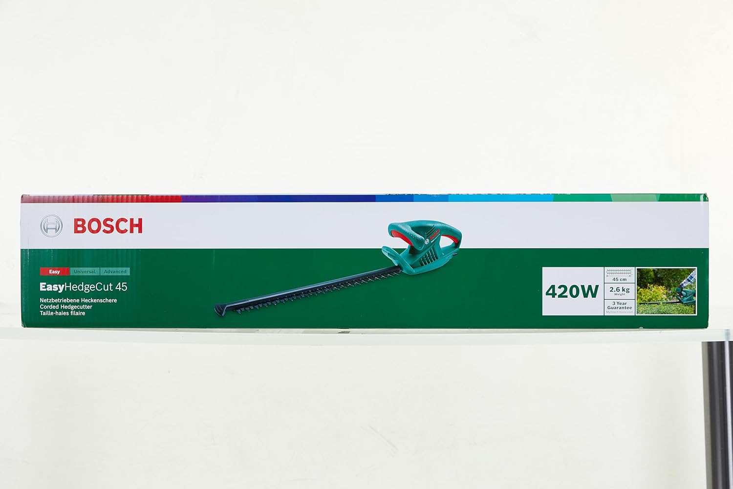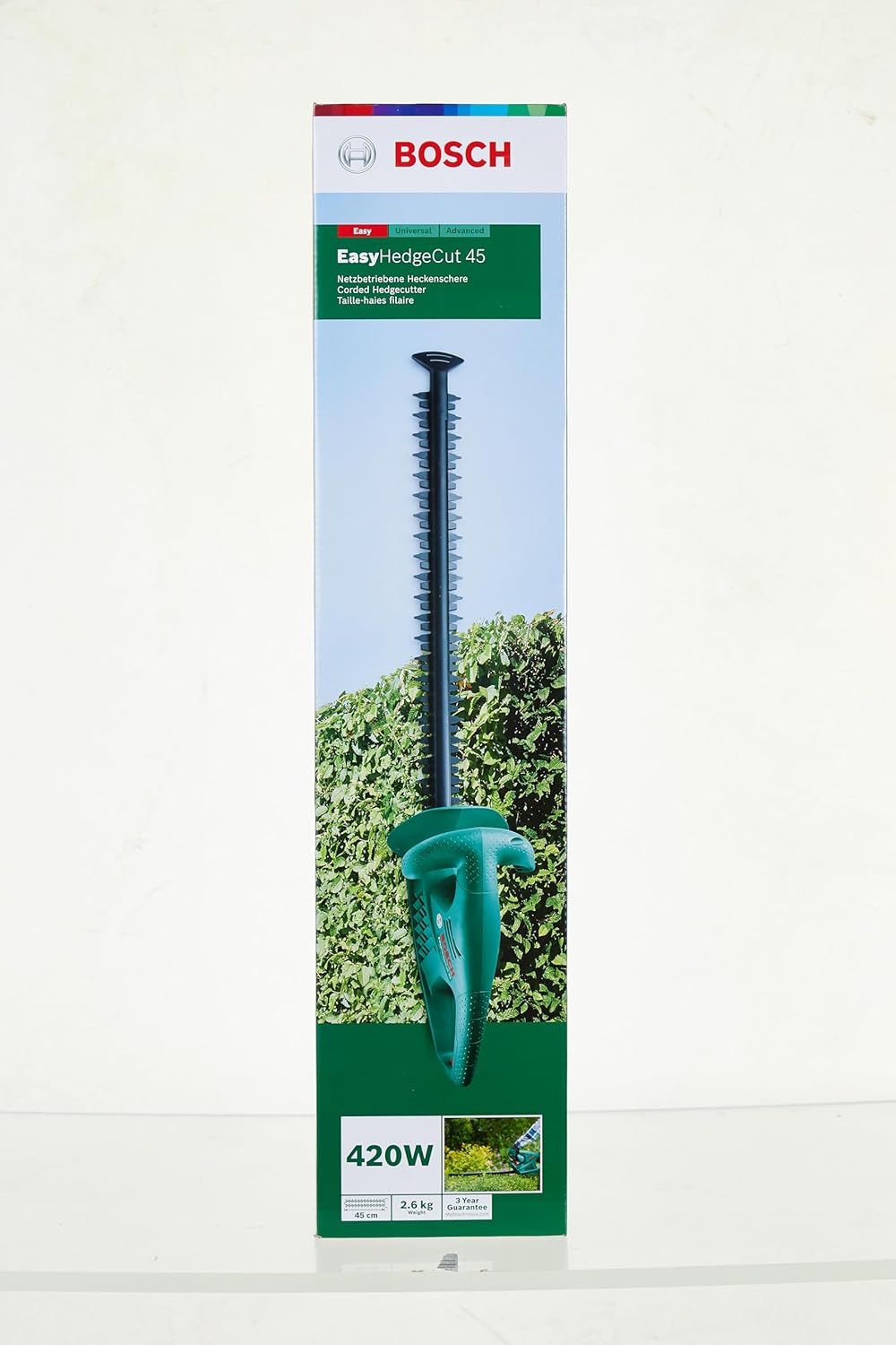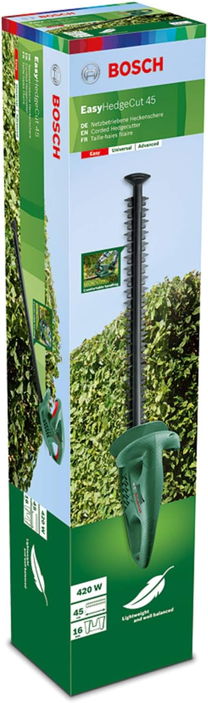 مشذب شجيرات كهربائي ايزي هيدج كات 45 (420 وات، سكينة بطول 45 سم، بداخل علبة) من بوش