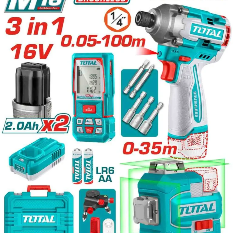 tosli250886 كومبو1 16 فولت دريل 170 نيوتن + ميزان ليزر + متر ليزر 100 متر